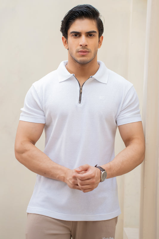 Sold outWhite Textured Cotton Zip Polo