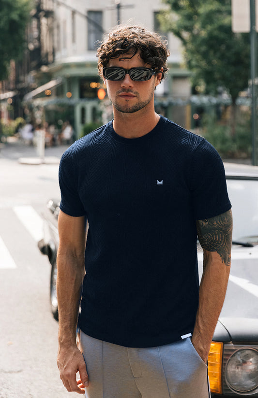 Sold outCedro Textured Cotton Tee in Navy
