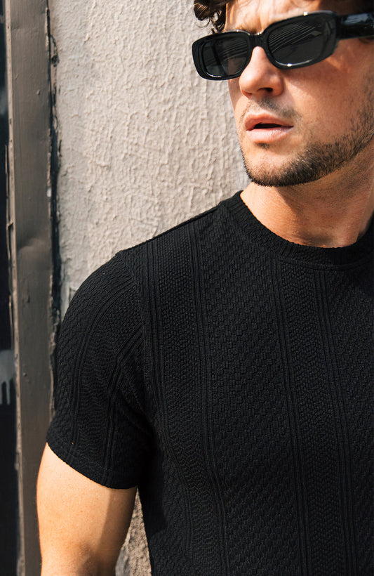 Cedro Textured Knit Cotton Tee in Black
