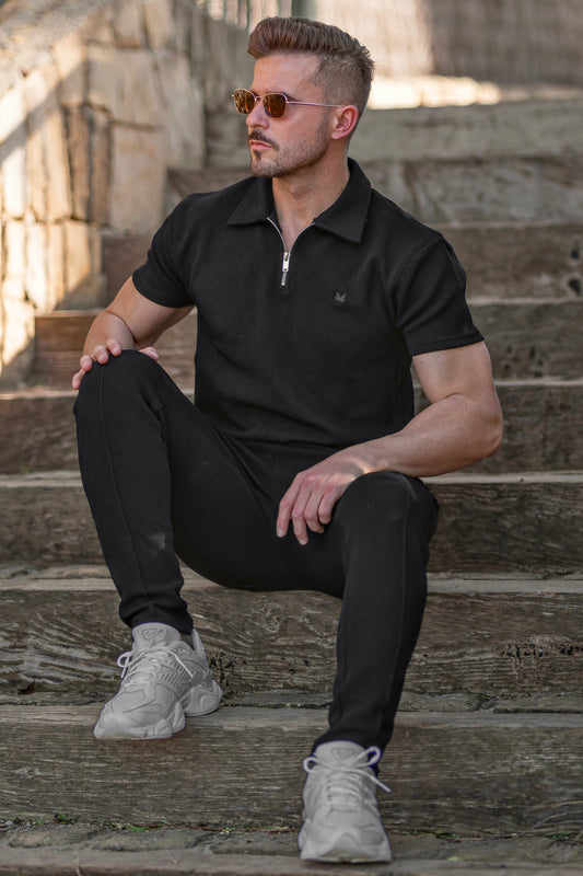 Sold outBlack Textured Cotton Popcorn Polo