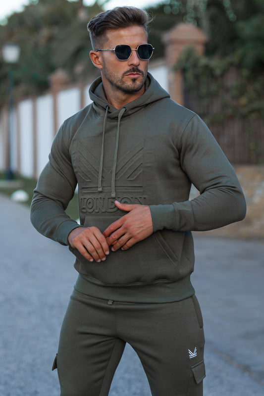 Emboss Cotton Hoodie - Olive