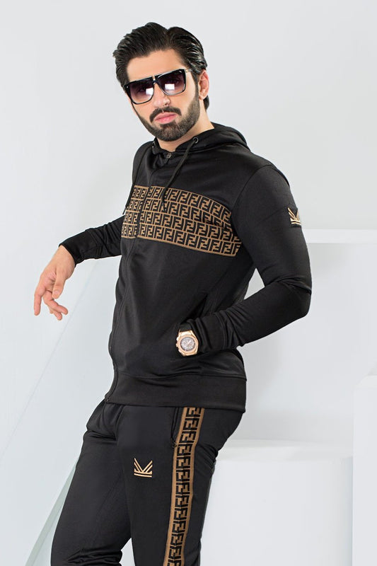 Embossed Cotton Tracksuit - Black
