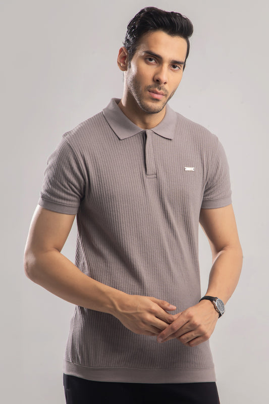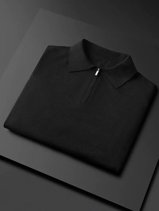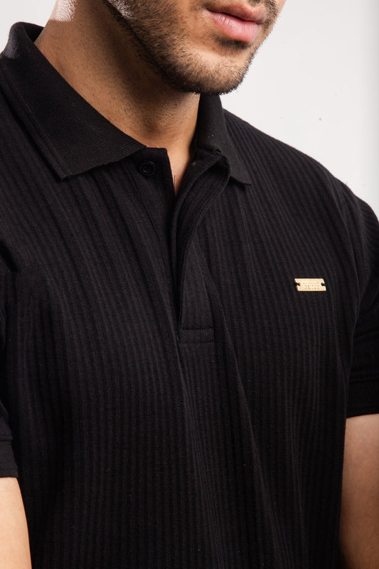 Metal Badge Drop Needle Texture Series Cotton Polo - Black