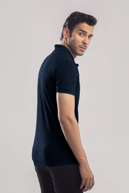Monaco Crinkle Textured Poly Cotton Shirt - Navy