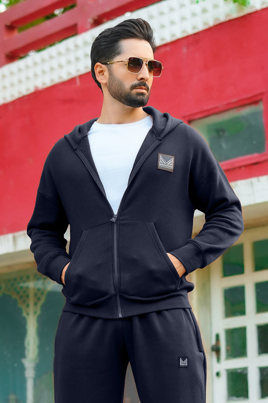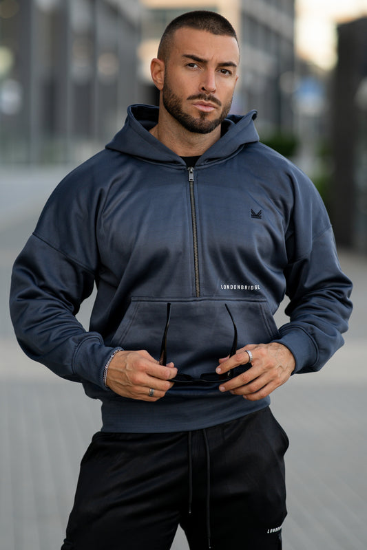 Navy 3D logo Dropshoulder Cotton Hoodie