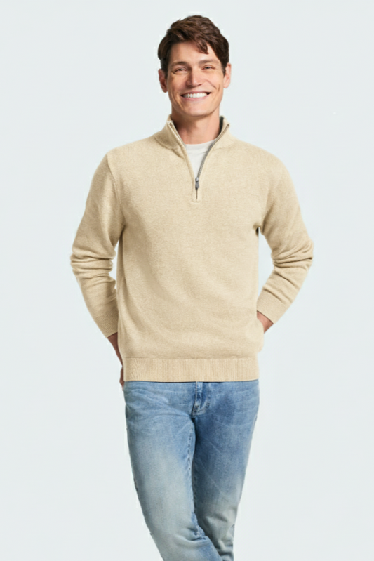 Quarter Zip Rib Knit Sweater - CREAM