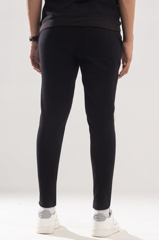 Premium Textured Cotton Trouser with Badge - Black