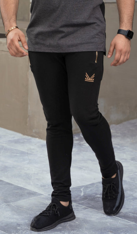 Premium Gold Zip Cotton Terry Trouser - Charcoal