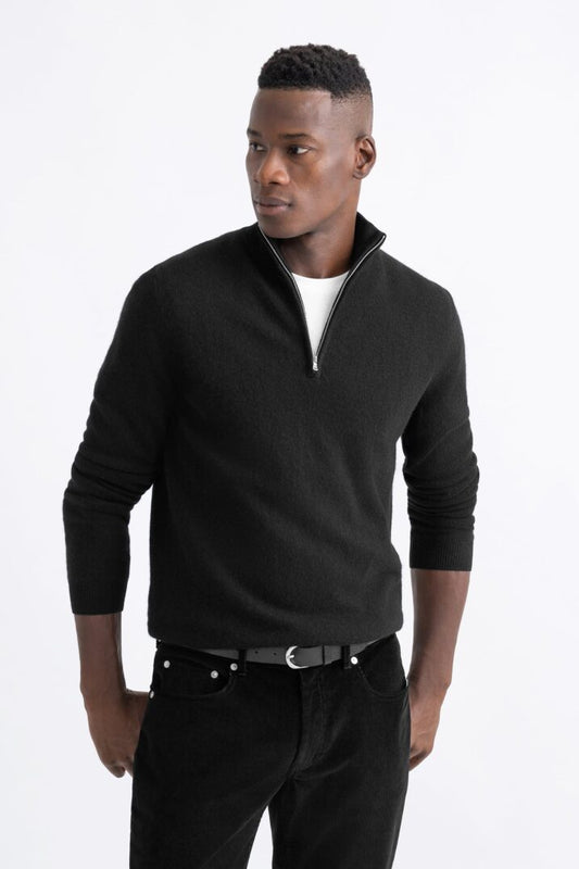 Quarter Zip Rib Knit Sweater - Black