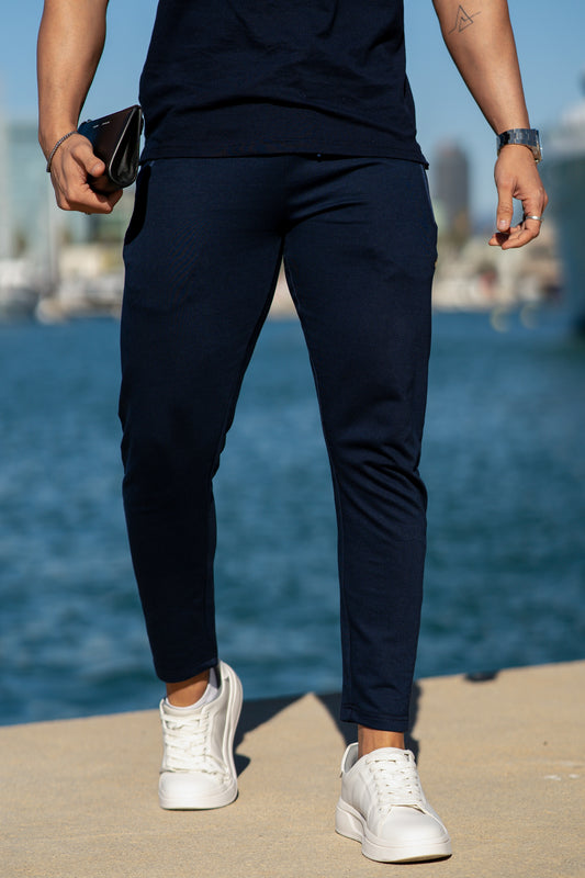 Premium Zip Cotton Terry Trouser - Navy