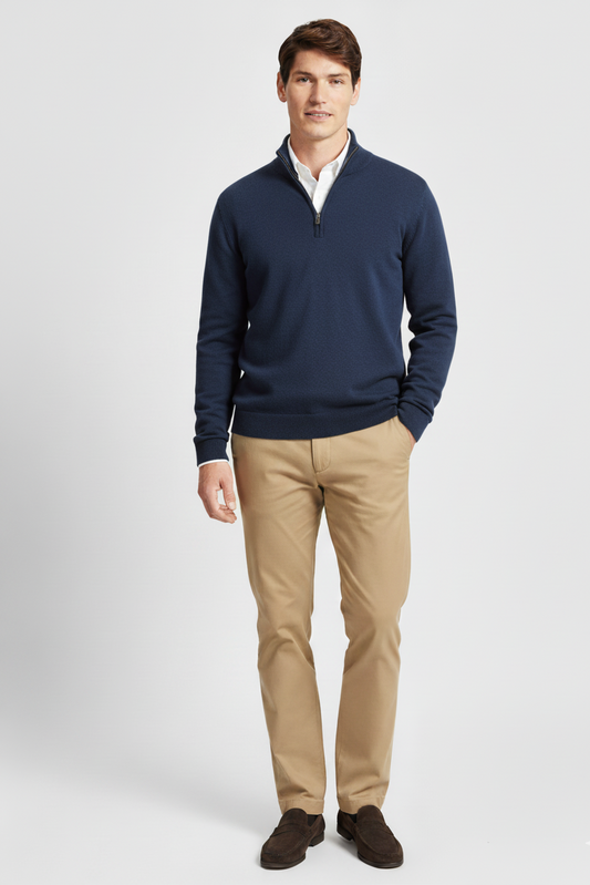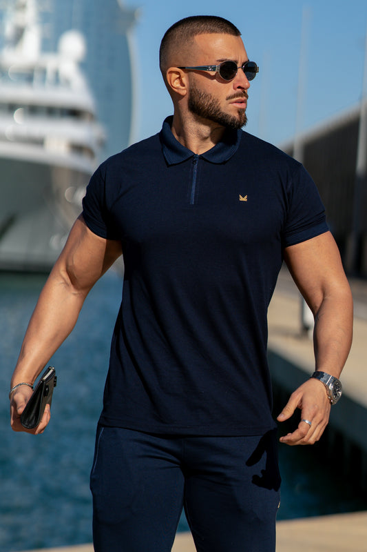 Premium Zip Cotton Polo - Navy