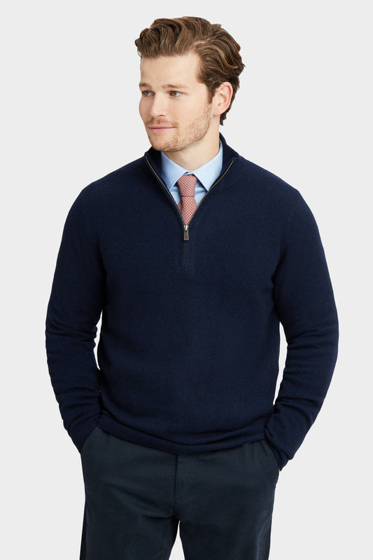 Quarter Zip Rib Knit Sweater - Navy