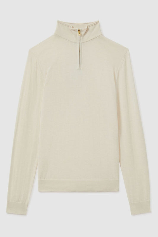 Quarter Zip Rib Knit Sweater - Off White