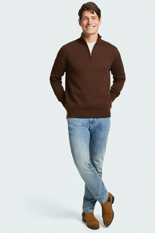 Quarter Zip Rib Knit Sweater - Chocolate Brown