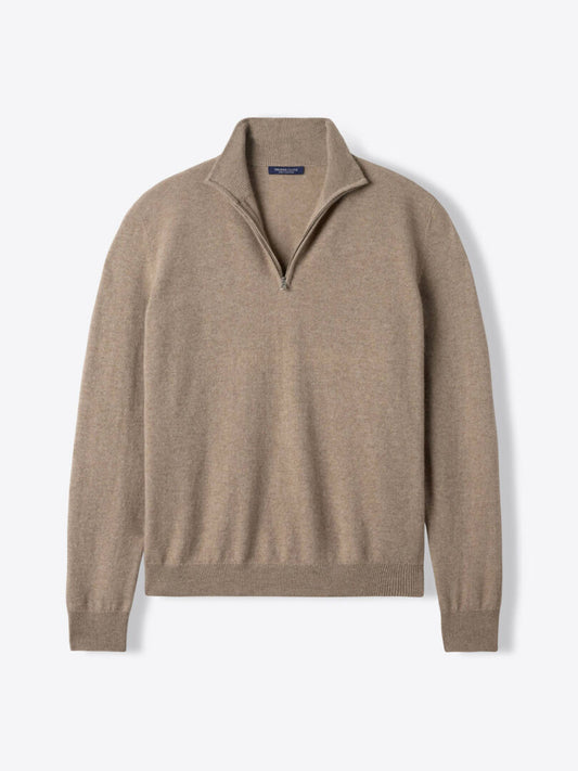 Quarter Zip Rib Knit Sweater - Peach Brown